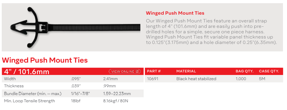 4" (101.6MM) WINGED PUSH MOUNT KABELBINDER - SORT