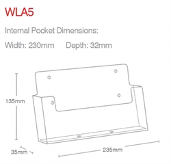 A5 brochureholder til væg, monteres nemt via de forborede huller eller vores #983T-19 akryltape.