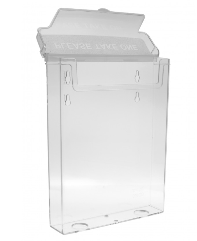 Klassisk og funktionel brochureholder fra Taymar i klar polystyren. Denne bordmodel er ideel til præsentation af brochurer, kataloger og informationsmateriale på disk, bord eller i reception.